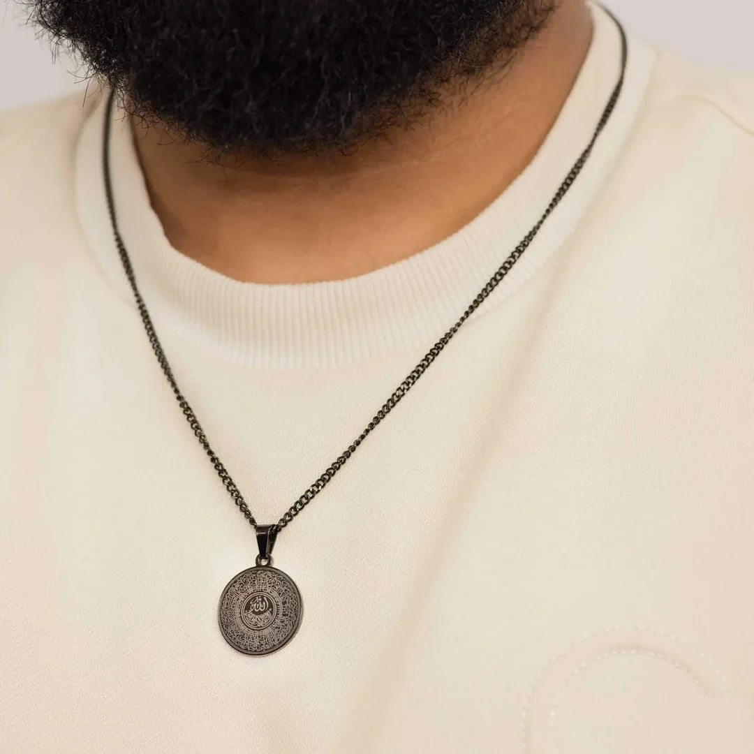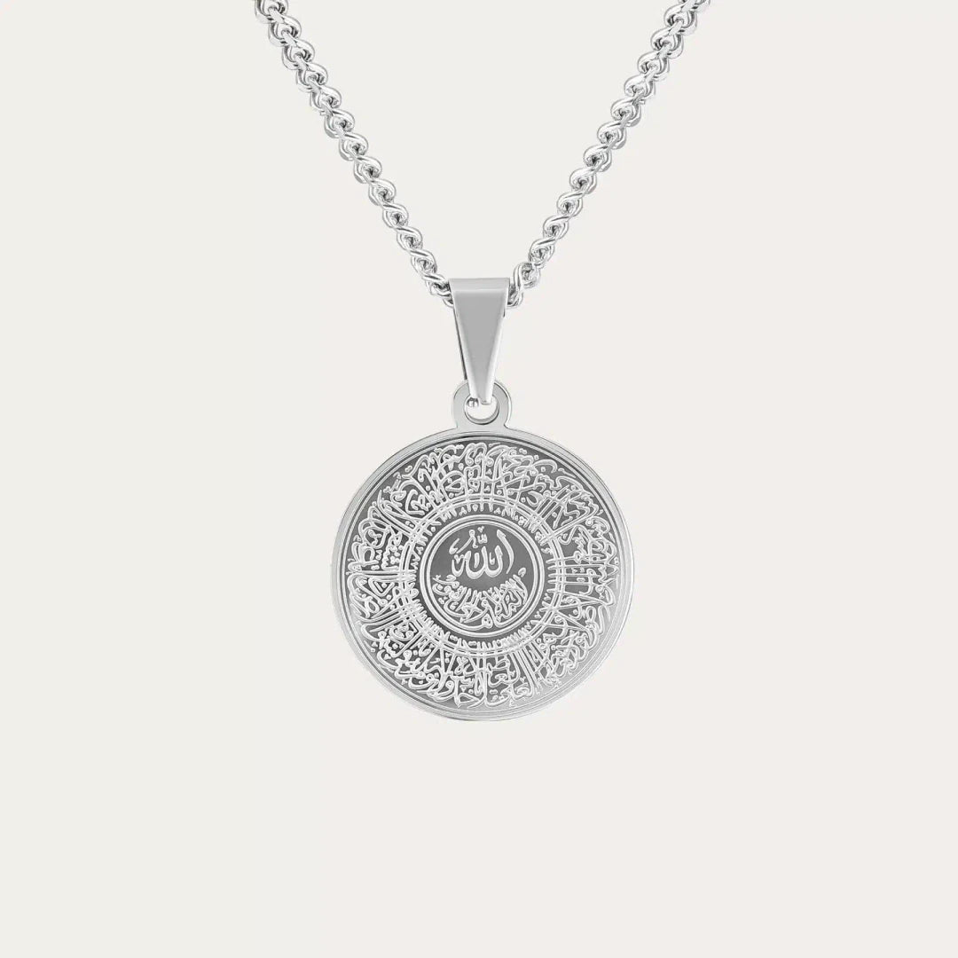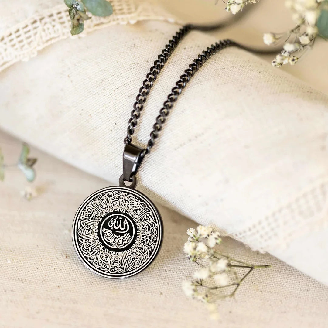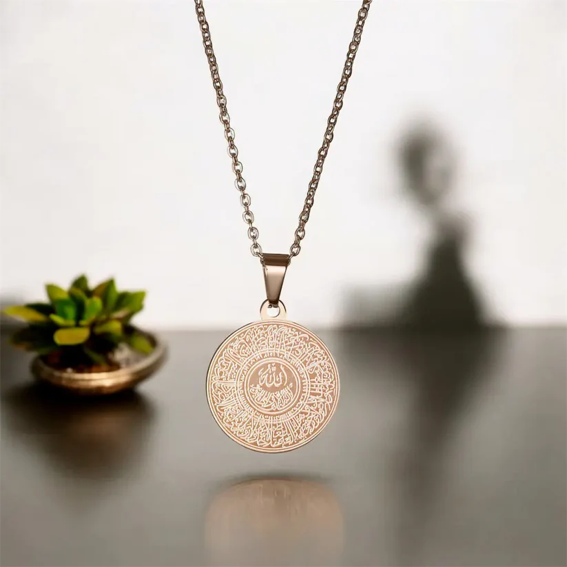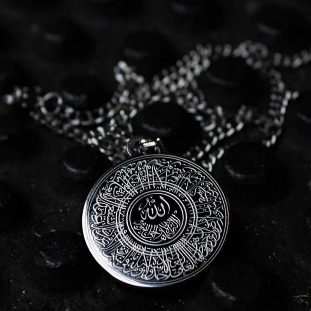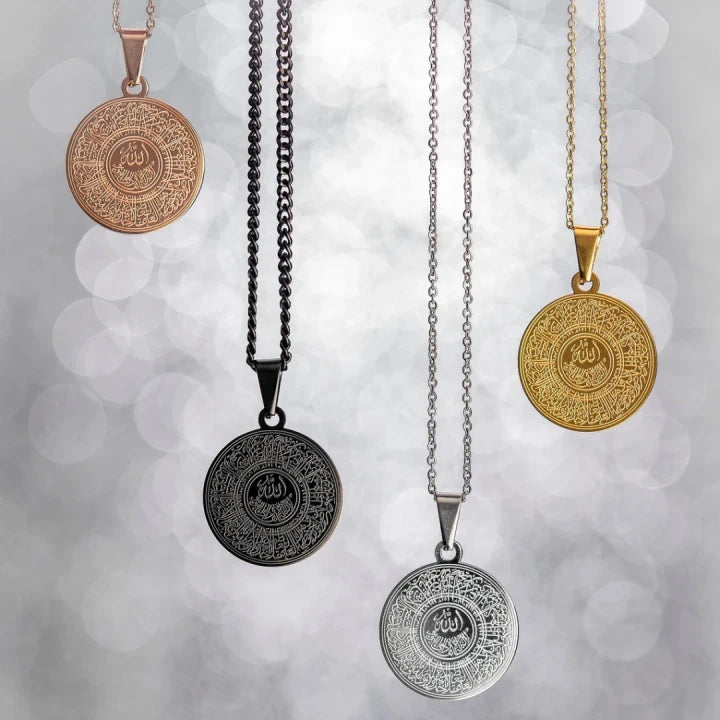 Eşsiz tasarımıyla zarafeti yansıtan bu kolye, üzerinde yer alan Ayet-el Kürsi motifi sayesinde sadece estetik değil, aynı zamanda manevi bir anlam taşır.